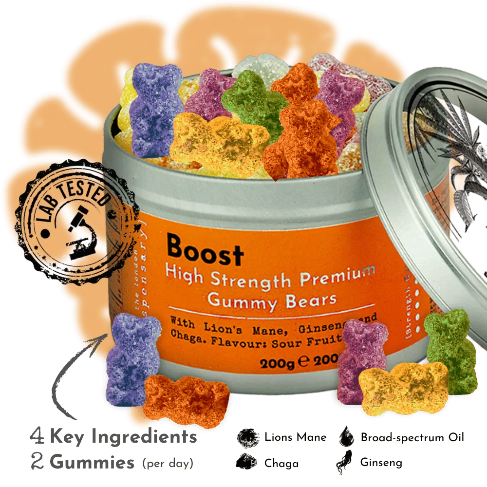 Infused with the highest quality broad-spectrum oil, lion's mane mushroom, ginseng & chaga mushroom.